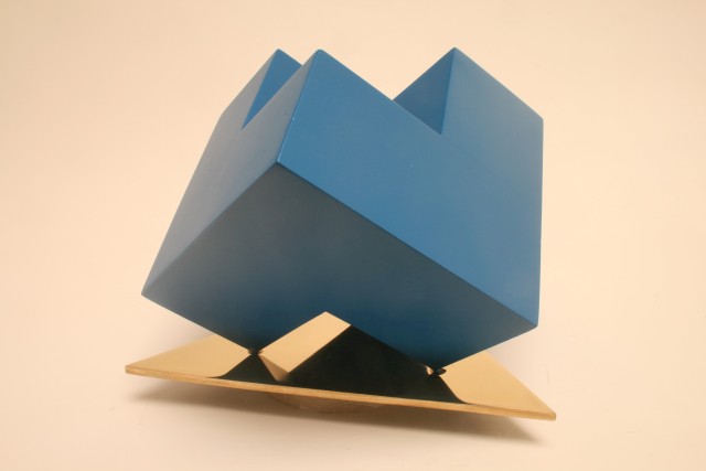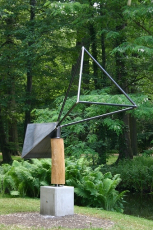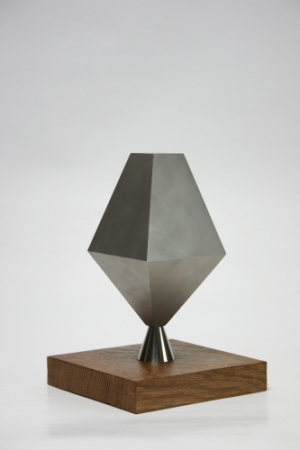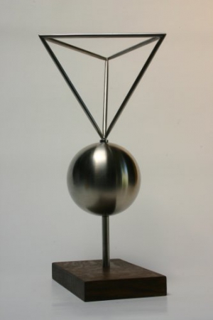 Wie ist die abgebildete Skulptur bestehend aus volumengleichen regelmäßigen Körpern – Kugel (Körper mit unendlich vielen Ecken) und Tetraeder benannt ‹Kontrast› zu bewerten?